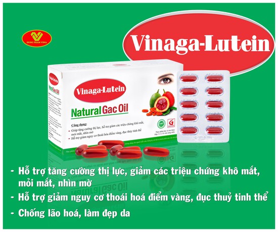 Công ty Vnpofood đã nghiên cứu, bổ xung nguồn Lutein và zeaxanthin được chiết xuất từ thiên nhiên vào trong dầu Gấc cho ra đời sản phẩm VINAGA-LUTEIN để ngoài các tác dụng của dầu Gấc sản phẩm có tác dụng tốt hơn nữa cho mắt.