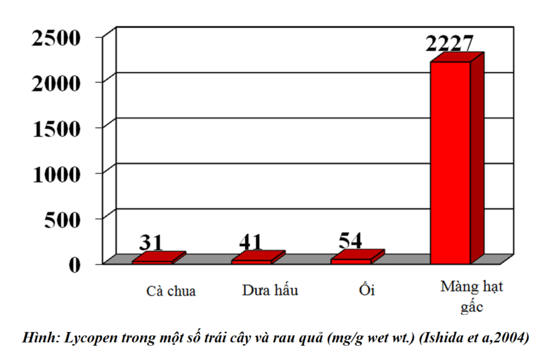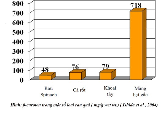 (Hai biểu đồ trên tôi trích dẫn từ công trình ngiên cứu với đề tài: “Gấc và công nghệ sản xuất tiềm năng” Của trung tâm thông tin khoa học và công nghệ-Sở khoa học và công nghệ Tp. HCM – Trích dẫn Kết quả nghiên cứu của Betty K. Ishida và cộng sự, năm 2004)